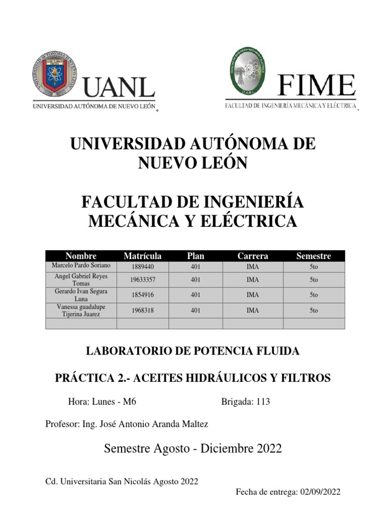 PRÁCTICA 2.- ACEITES HIDRÁULICOS Y FILTROS