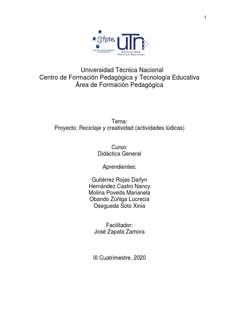 Proyecto: Reciclaje y Creatividad ....................................................................... 4
