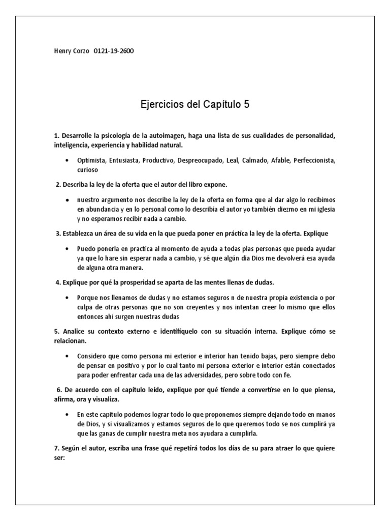 6. De acuerdo con el capítulo leído, explique por qué tiende a convertirse en lo que piensa,