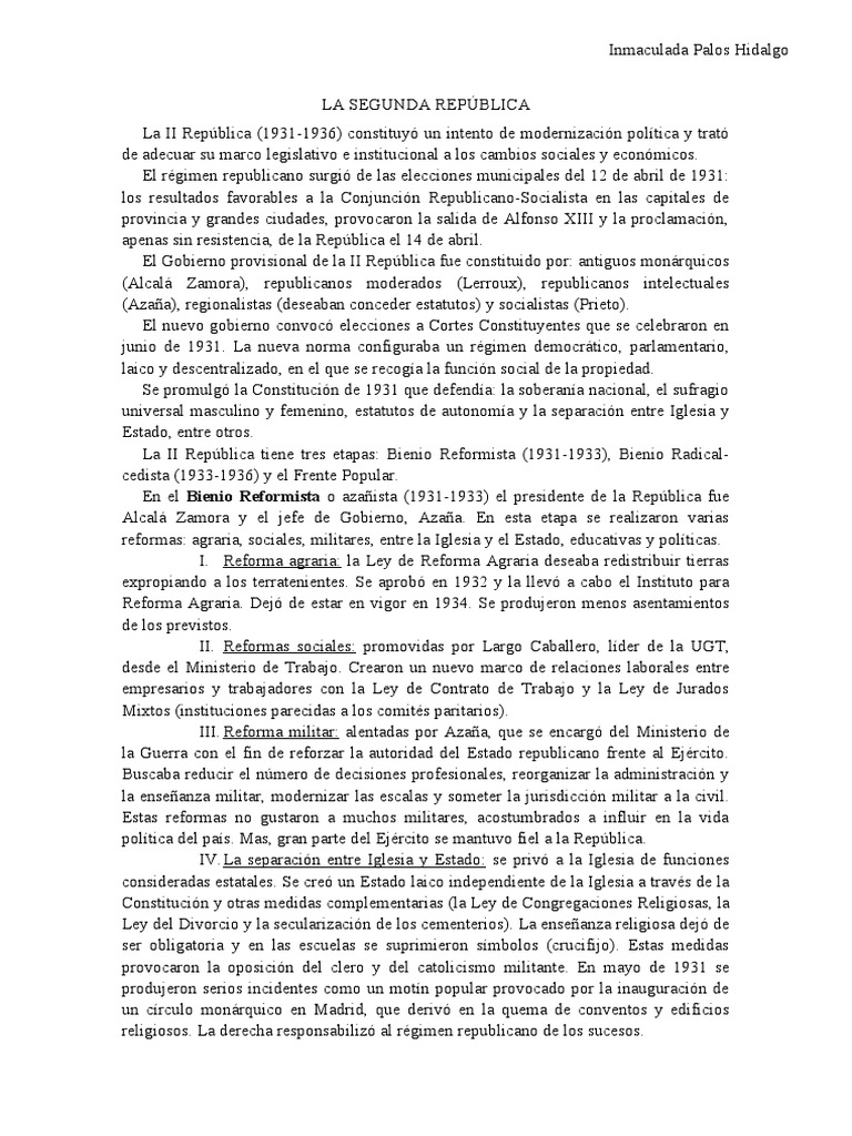 La II República tiene tres etapas: Bienio Reformista (1931-1933), Bienio Radical-