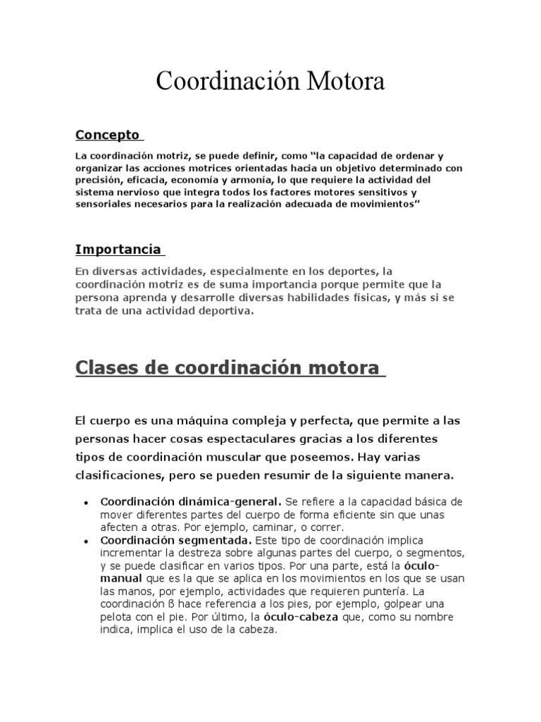 coordinación motriz es de suma importancia porque permite que la