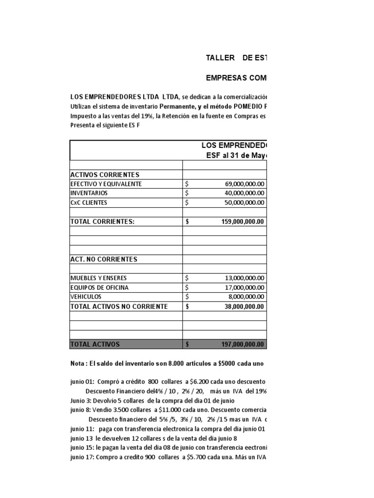 TALLER DE ESTADOS FINANCIEROS
