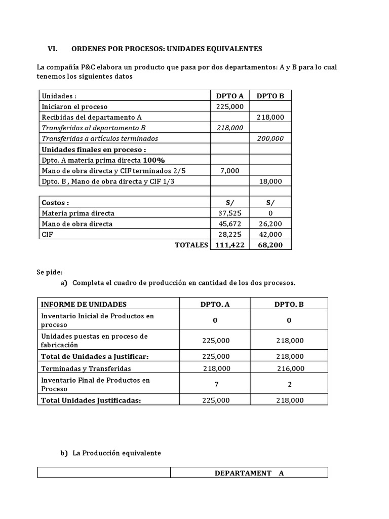 ORDENES POR PROCESOS: UNIDADES EQUIVALENTES
