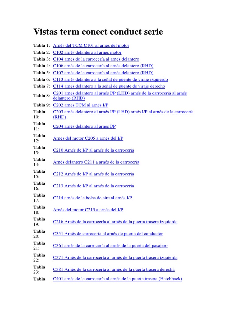 Tabla C401 arnés de la carrocería al arnés de la puerta trasera (Hatchback)