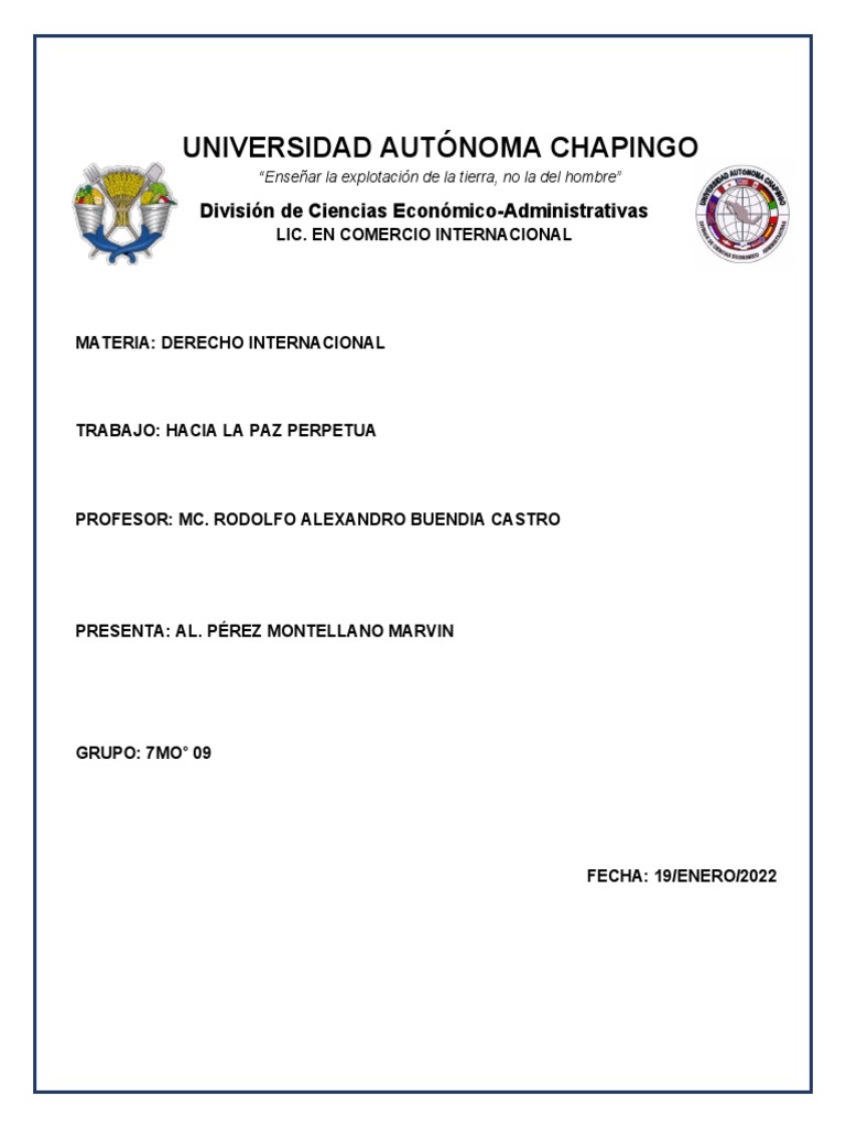 propia decisión de mantenerse en él. La paz perpetua es, en todo caso, un ideal