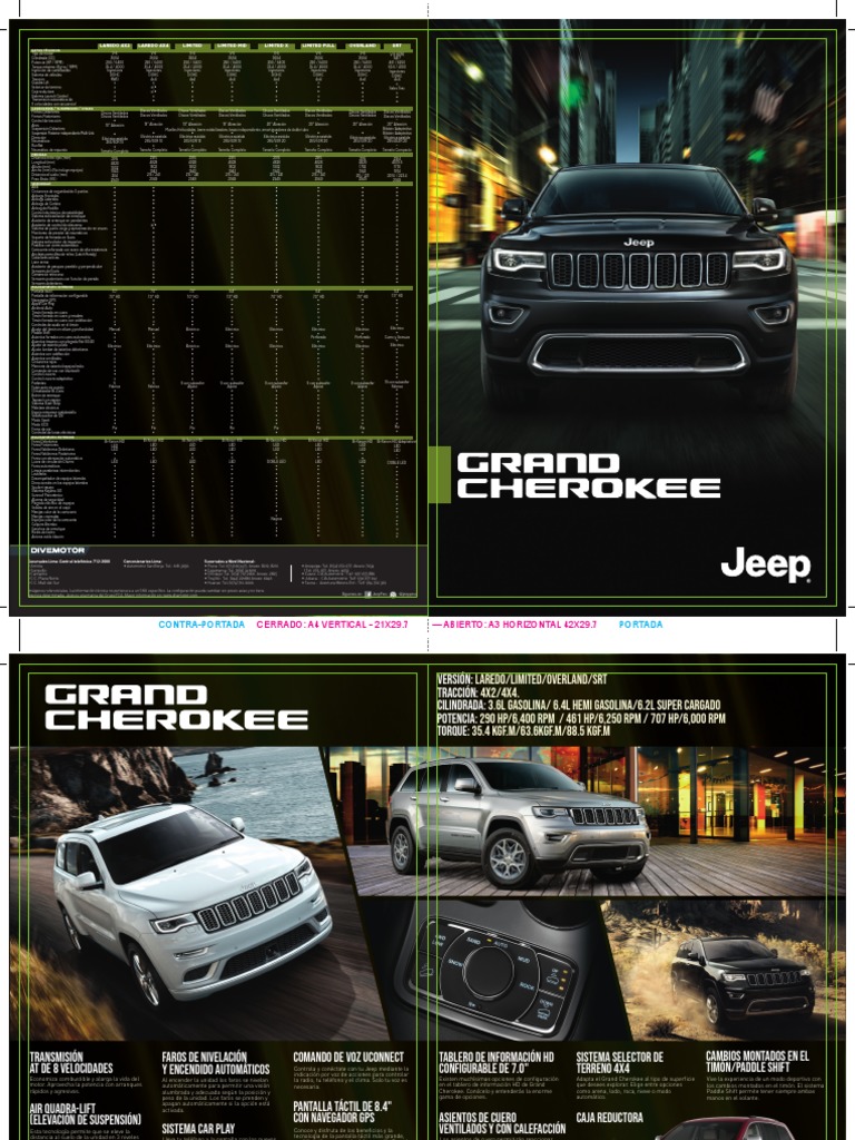 Economiza combustible y alarga la vida del Al encender la unidad los faros se nivelan la radio, tu teléfono y el clima. Solo tu voz es Existen muchísimas opciones de configuración Adapta el Grand Cherokee al tipo de superficie Vive la experiencia de un modo deportivo con