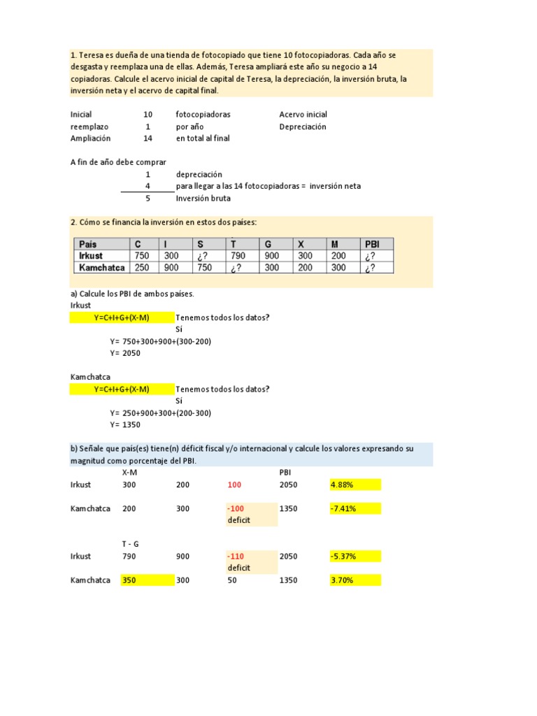 copiadoras. Calcule el acervo inicial de capital de Teresa, la depreciación, la inversión bruta, la
