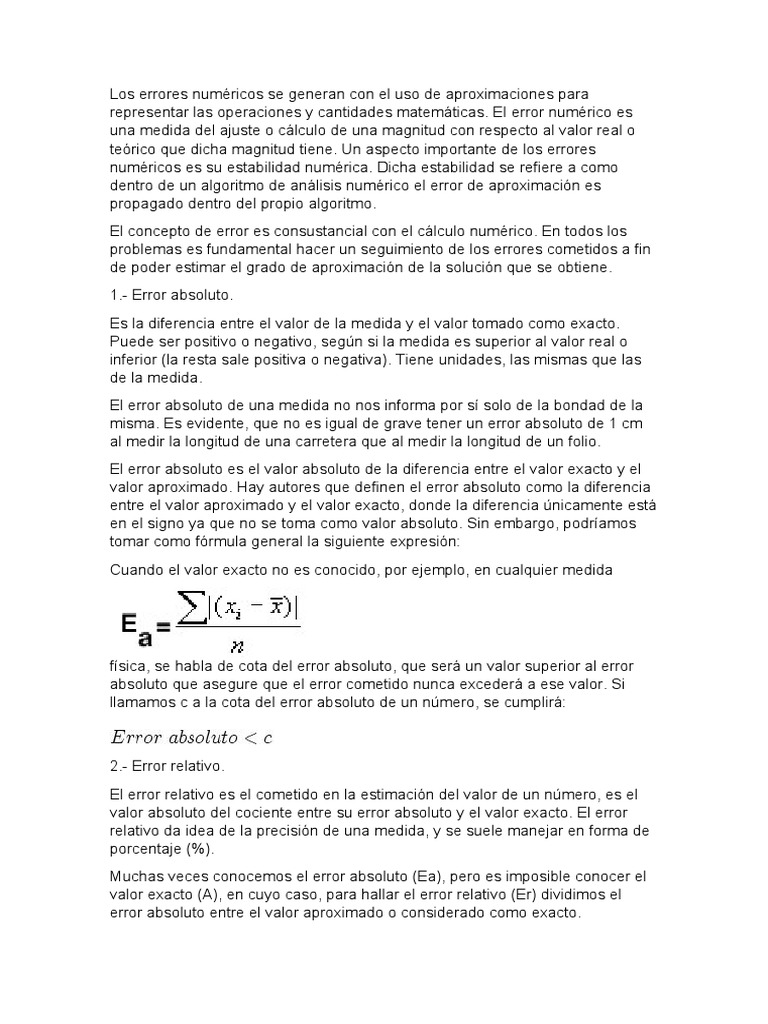 representar las operaciones y cantidades matemáticas. El error numérico es