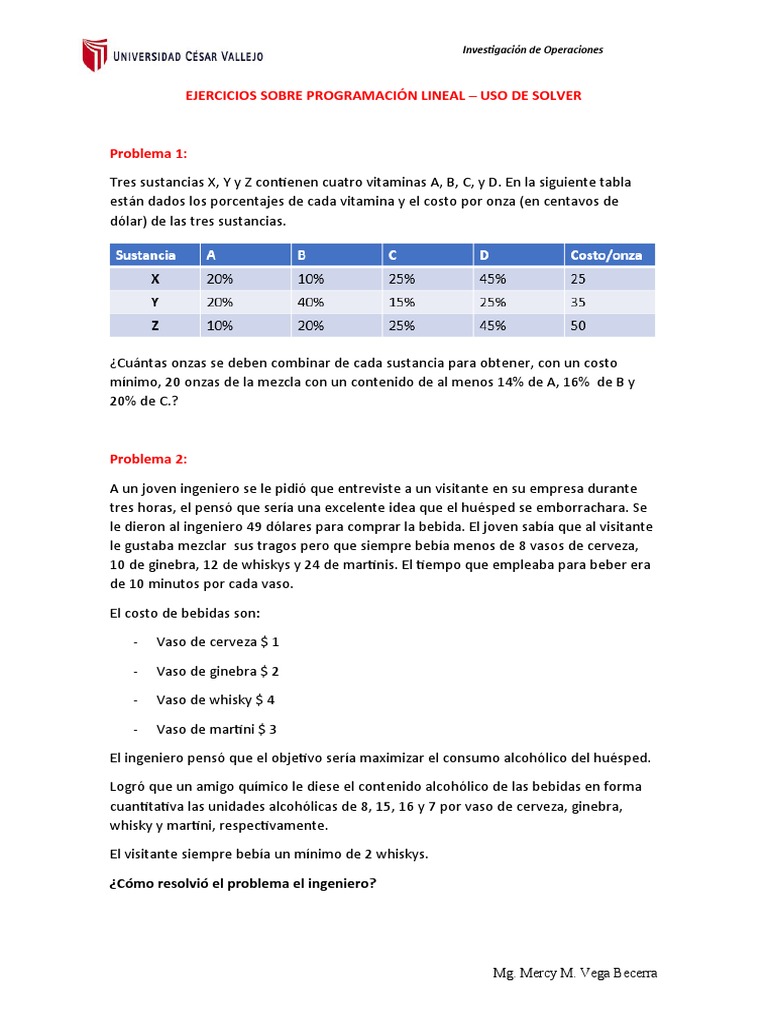 EJERCICIOS SOBRE PROGRAMACIÓN LINEAL – USO DE SOLVER