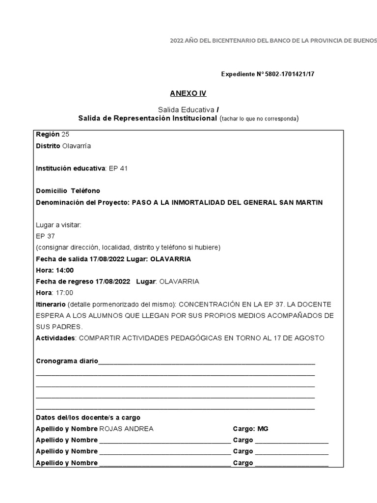 Fecha de salida 17/08/2022 Lugar: OLAVARRIA