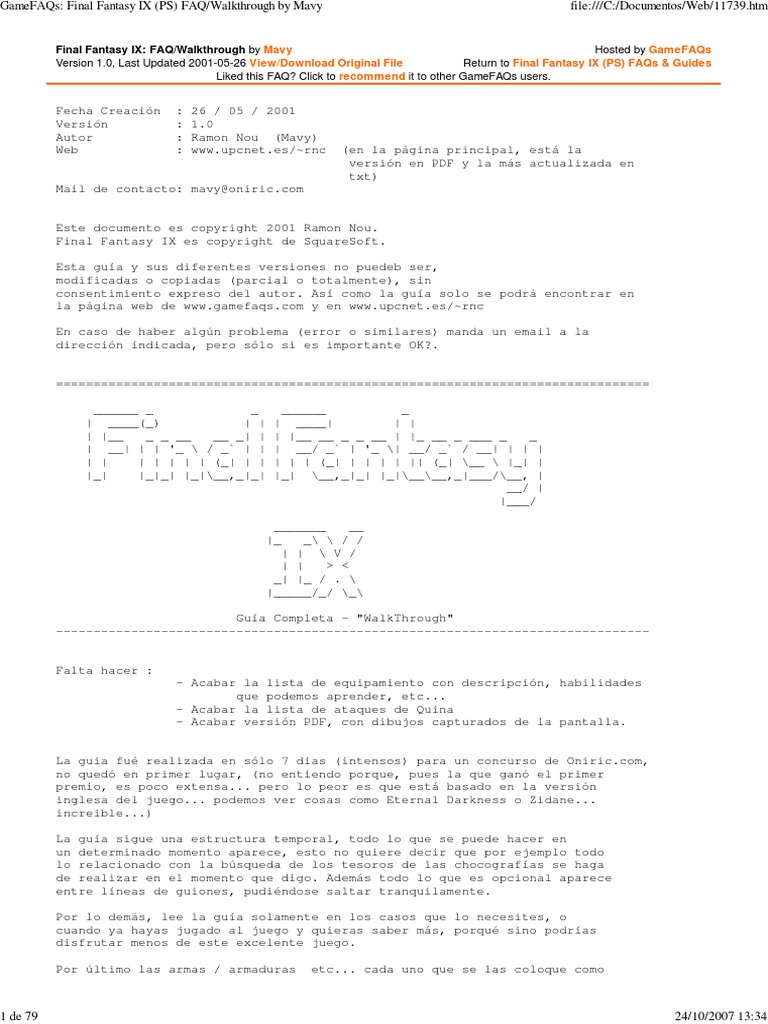 GameFAQs: Final Fantasy IX (PS) FAQ/Walkthrough by Mavy file:///C:/Documentos/Web/11739.htm