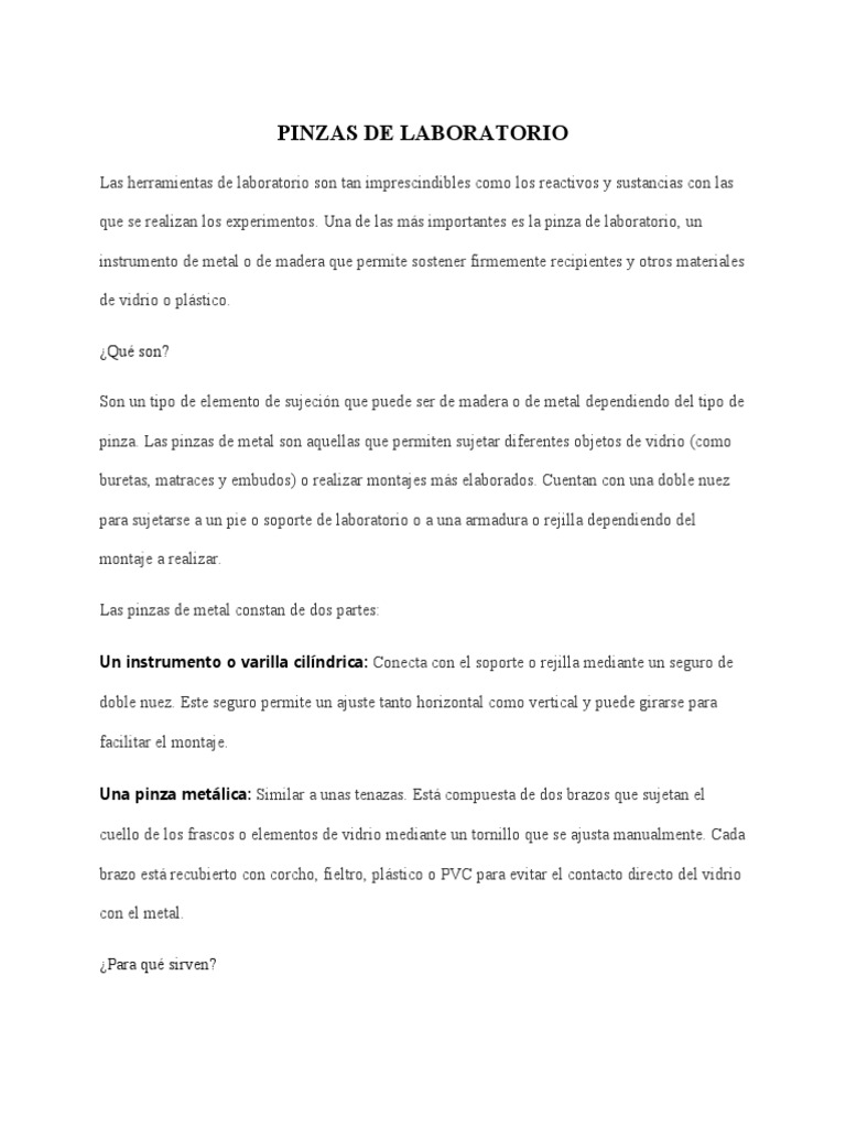 que se realizan los experimentos. Una de las más importantes es la pinza de laboratorio, un