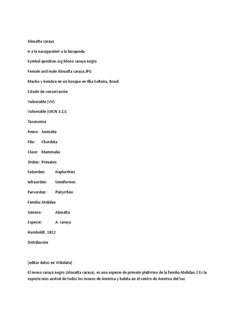 Proyectos WikimediaWd Datos: Q856342Commonscat Multimedia: Alouatta caraya /