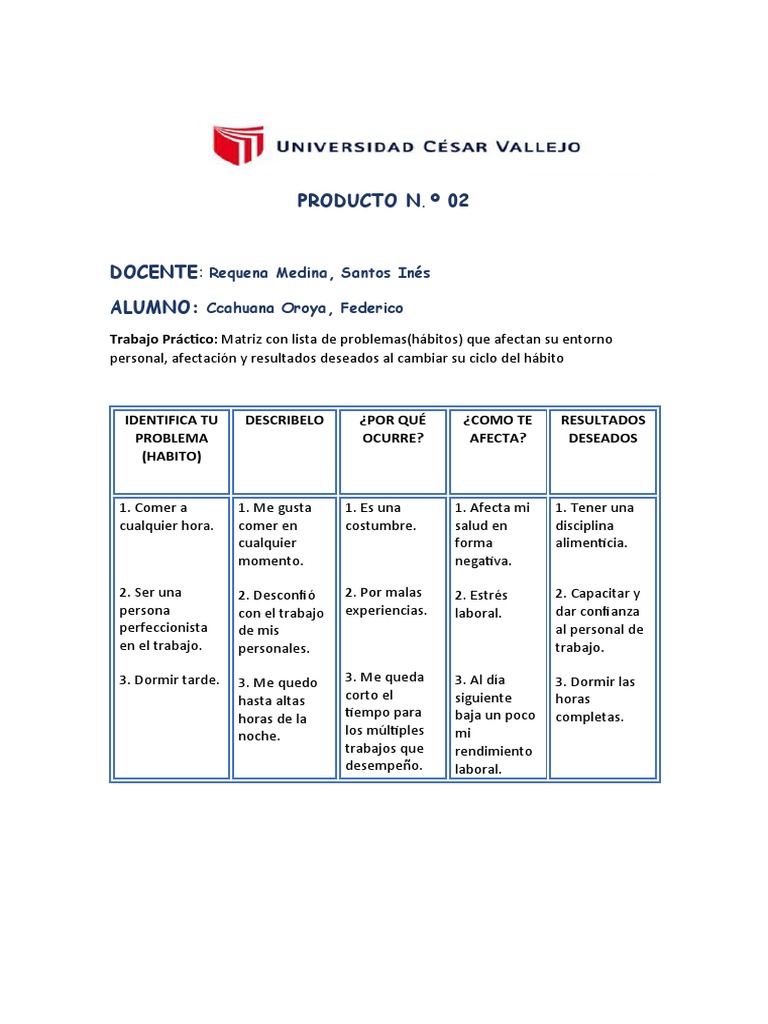 Trabajo Práctico: Matriz con lista de problemas(hábitos) que afectan su entorno