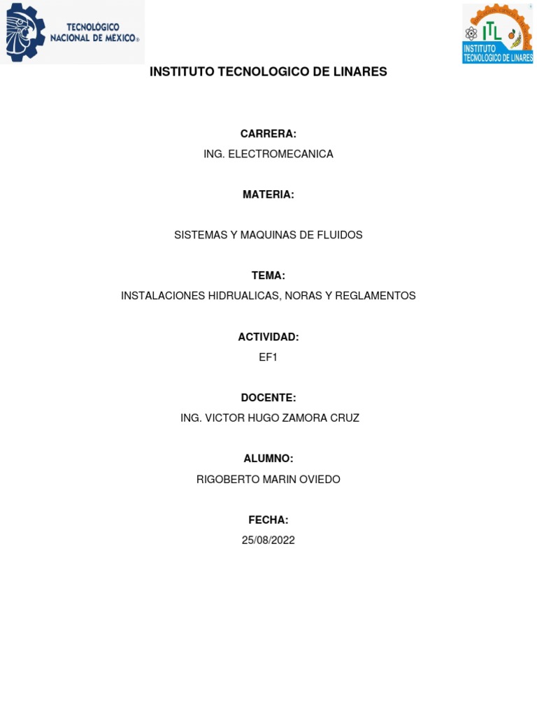 INSTALACIONES HIDRUALICAS, NORAS Y REGLAMENTOS