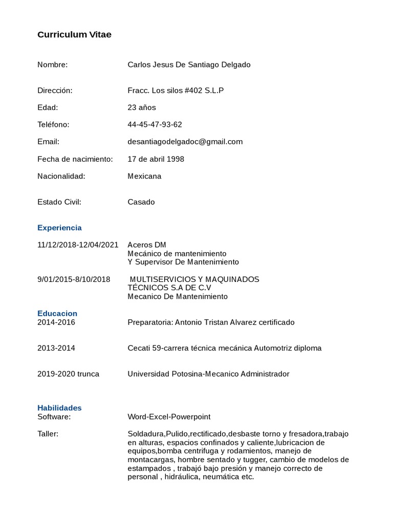 Nombre: Carlos Jesus De Santiago Delgado