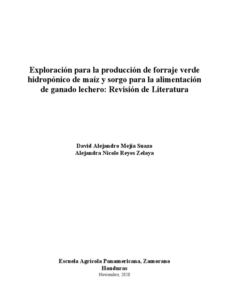 Resumen. El forraje verde hidropónico es un alimento fresco que se obtiene del proceso de