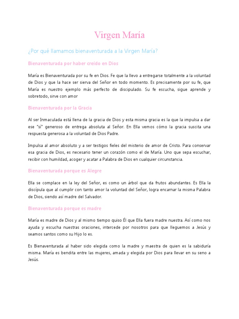 María es Bienaventurada por su fe en Dios. Fe que la llevo a entregarse totalmente a la voluntad