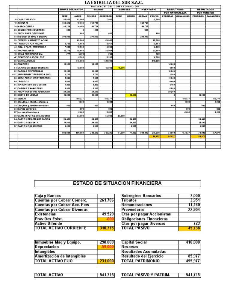 SUMAS DEL MAYOR SALDOS AJUSTES INVENTARIO RESULTADOS RESULTADOS