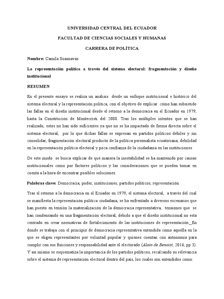políticos ecuatorianos al adoptar el papel del sistema de representación electoral han