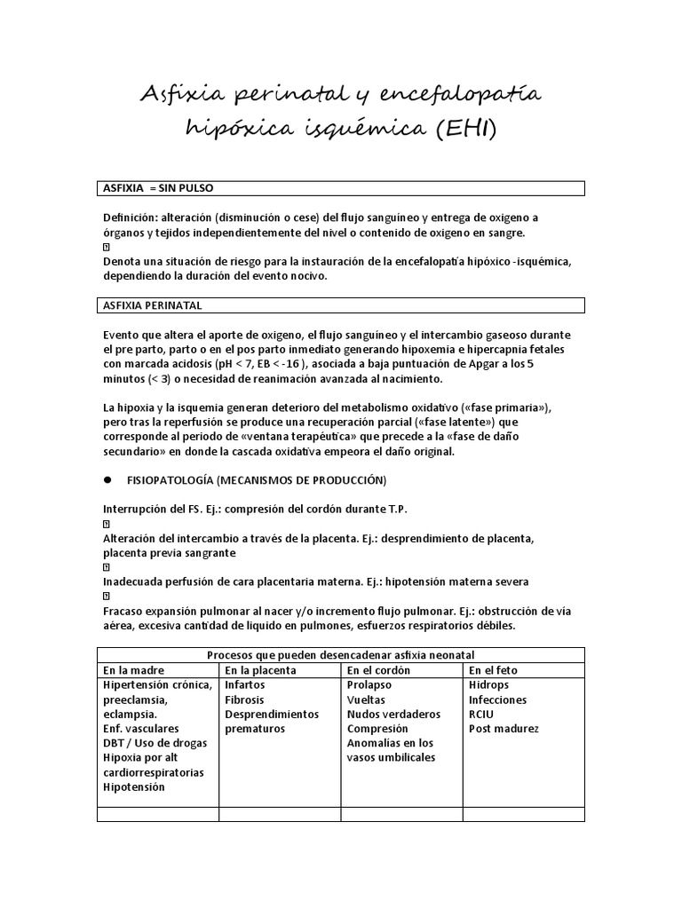 el pre parto, parto o en el pos parto inmediato generando hipoxemia e hipercapnia fetales