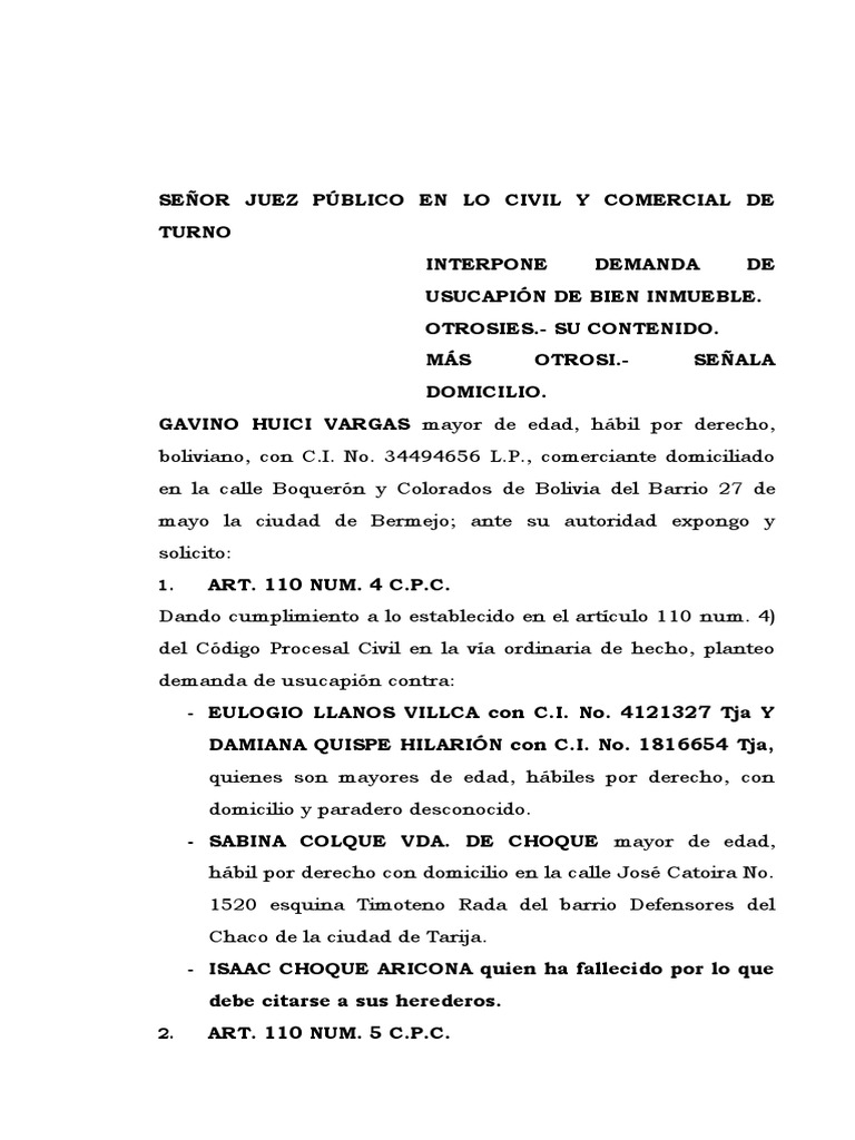 demanda de usucapión contra: