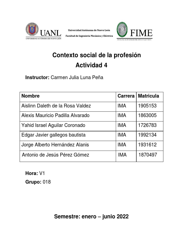 Contexto social de la profesión