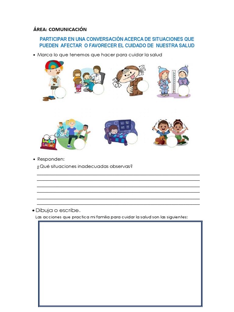 • Escriben y dibujan cuatro maneras en que cuidan su cuerpo.