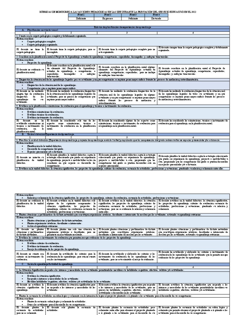 RÚBRICAS DE MONITOREO A LAS ACCIONES PEDAGÓGICAS EN LAS IIEE DURANTE LA PRESTACIÓN DEL SERVICIO EDUCATIVO EN EL 2022