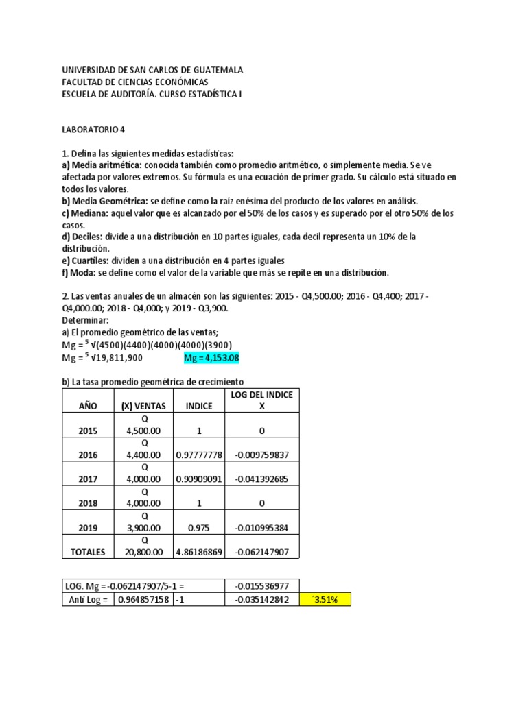2. Las ventas anuales de un almacén son las siguientes: 2015 - Q4,500.00; 2016 - Q4,400; 2017 -