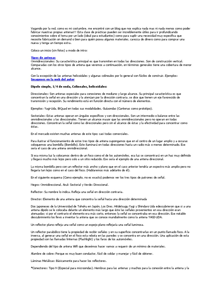 fabricar nuestras propias antenas!!! Esta clase de prácticas pueden ser increiblemente útiles para ir profundizando