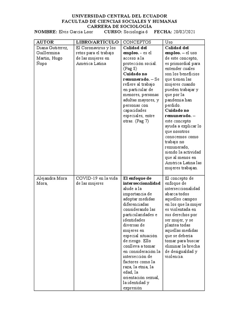 NOMBRE: Elvis García Loor CURSO: Sociología 6 FECHA: 20/02/2021