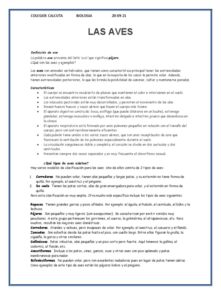 Las aves son animales vertebrados, que tienen como característica principal tener las extremidades
