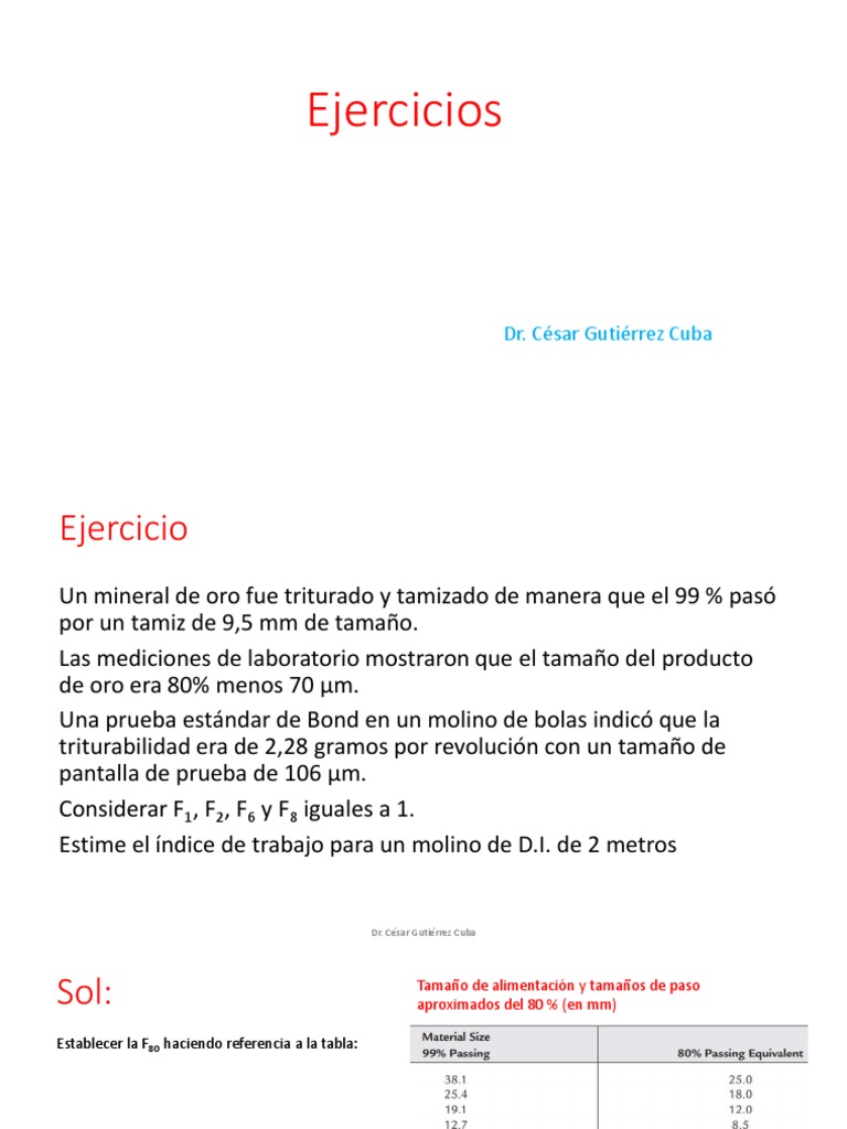 de reducción del 80 % del tamaño de paso de la alimentación, F80, y 80 % del tamaño de paso del producto,