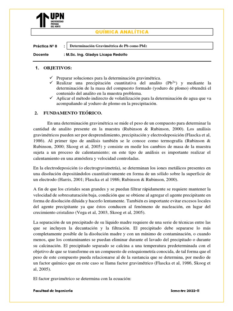 Práctica Nº 8 : Determinación Gravimétrica de Pb como PbI2