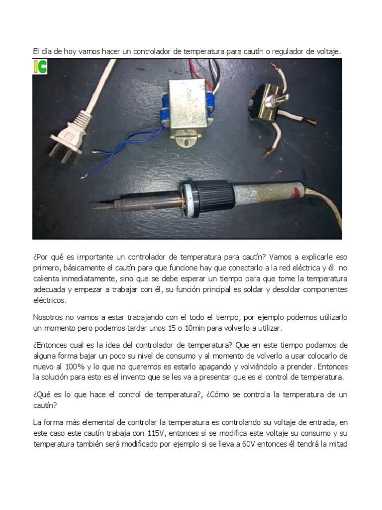 El día de hoy vamos hacer un controlador de temperatura para cautín o regulador de voltaje.
