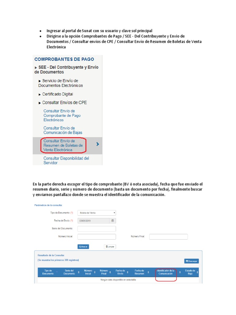 resumen diario, serie y número de documento (basta un documento por fecha), finalmente buscar