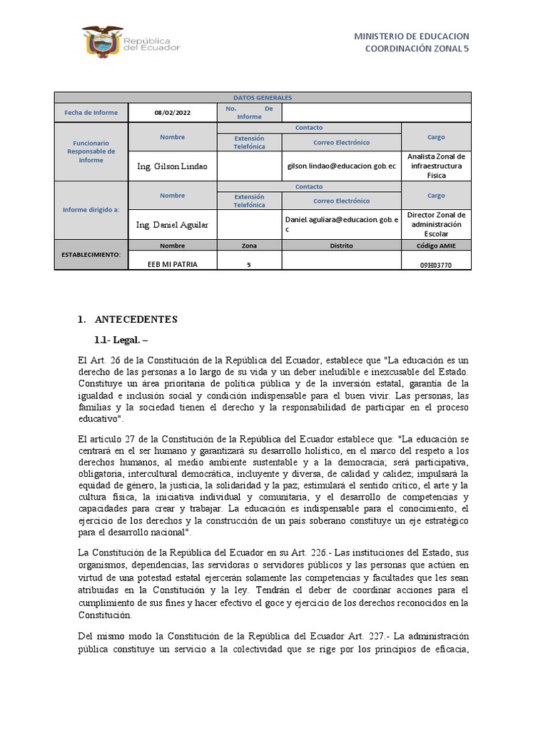Ing. Gilson Lindao gilson.lindao@educacion.gob.ec infraestructura