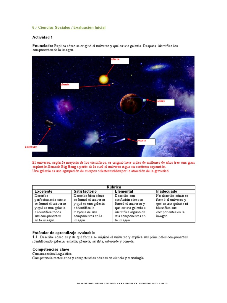 Enunciado: Explica cómo se originó el universo y qué es una galaxia. Después, identifica los