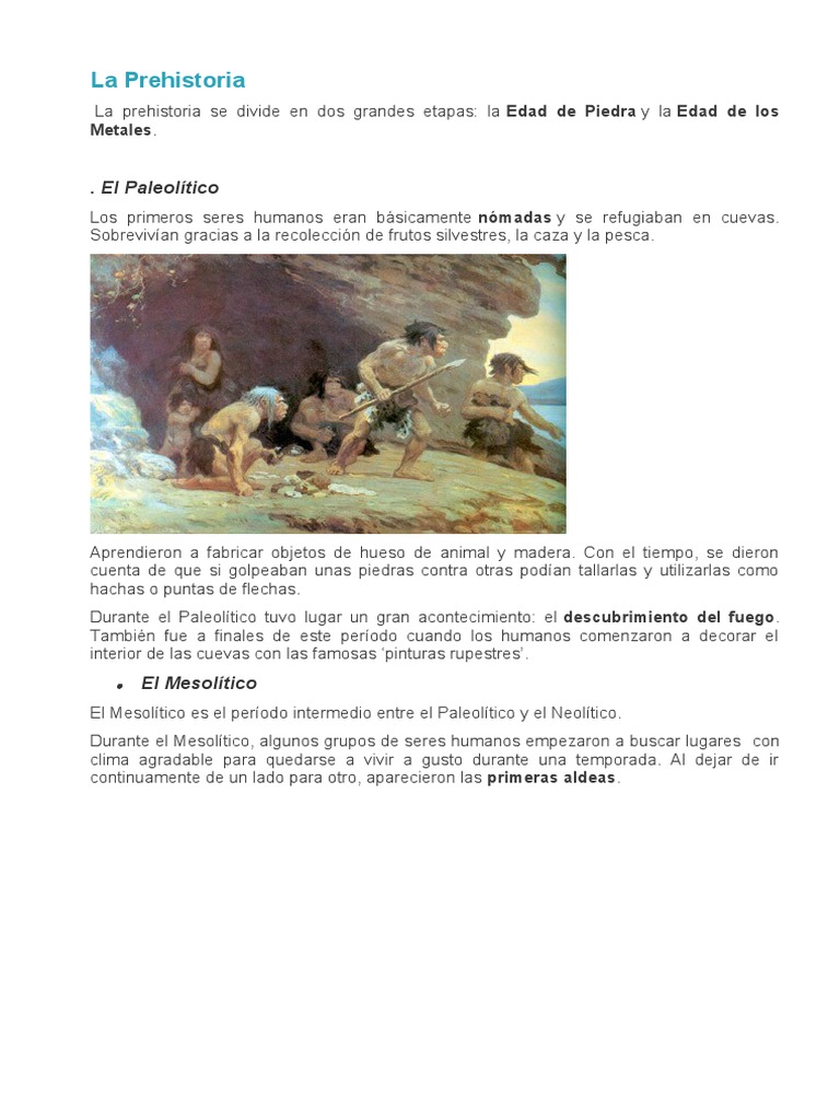 La prehistoria se divide en dos grandes etapas: la Edad de Piedra y la Edad de los