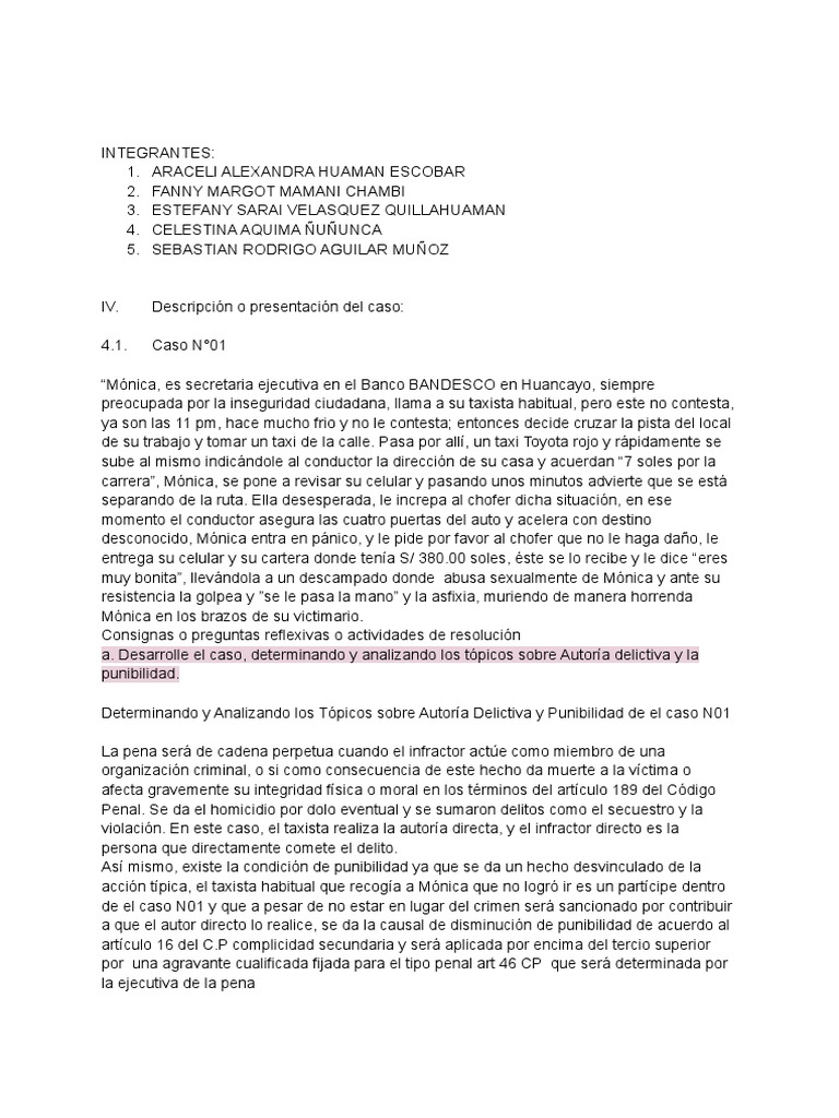 Determinando y Analizando los Tópicos sobre Autoría Delictiva y Punibilidad de el caso N01