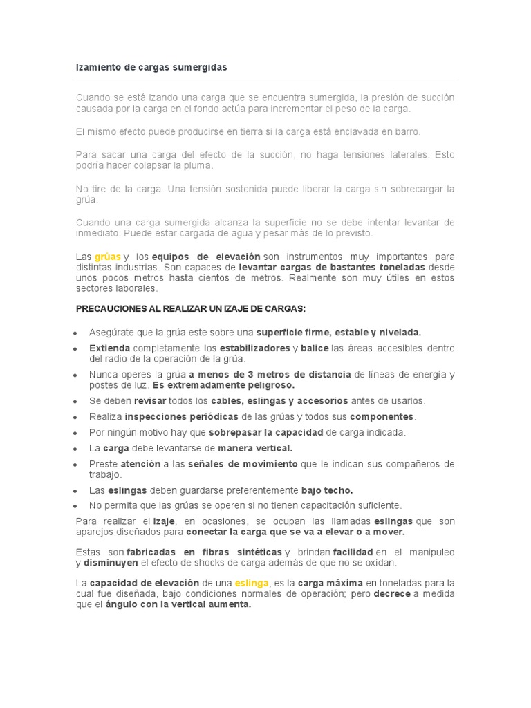 Cuando una carga sumergida alcanza la superficie no se debe intentar levantar de