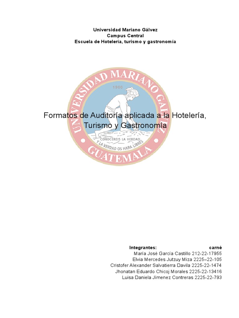 Explicación en la Rama De Hotelería:El formato de auditoría en la hotelería es como una
