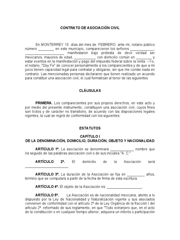 por medio del presente instrumento, constituyen una asociación civil, cuyos fines