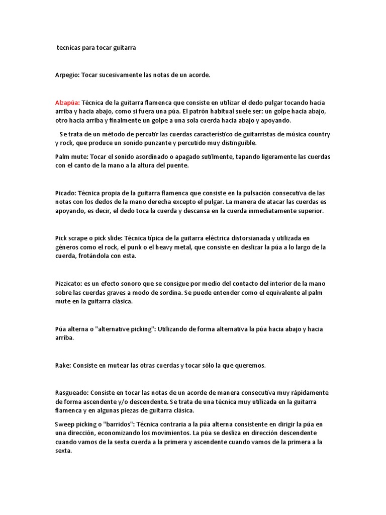 Rasgueado: Consiste en tocar las notas de un acorde de manera consecutiva muy rápidamente
