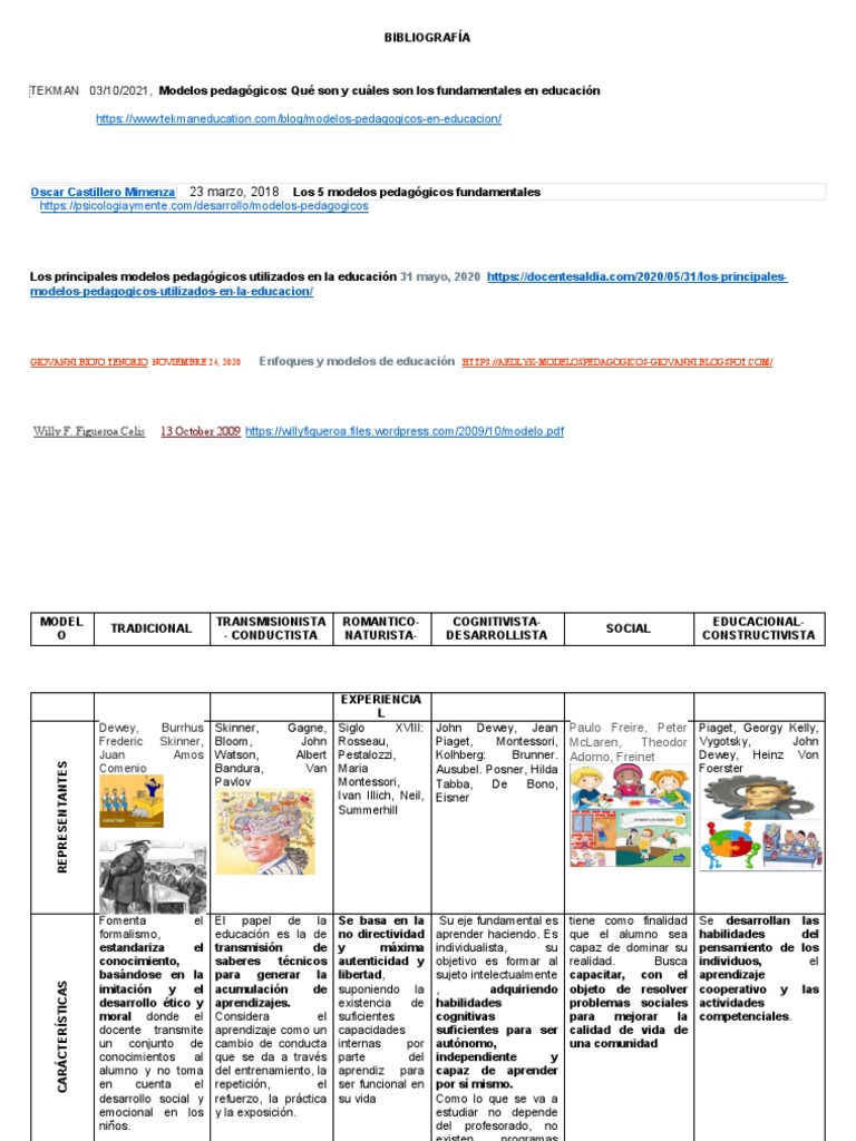 se evaluará. Es indispensable conocer los modelos pedagógicos ya que además de enriquecer nuestros conocimientos, también de esta
