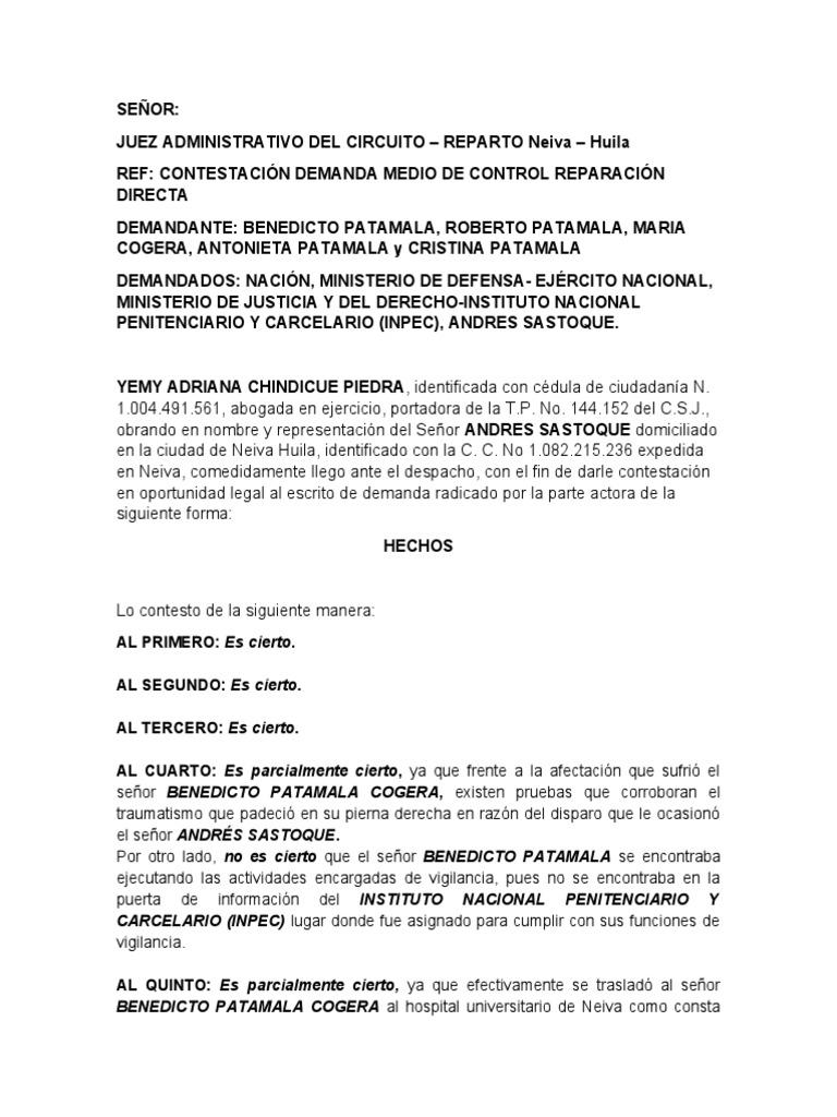 en Neiva, comedidamente llego ante el despacho, con el fin de darle contestación