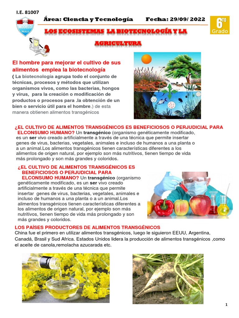 ¿EL CULTIVO DE ALIMENTOS TRANSGÉNICOS ES BENEFICIOSOS O PERJUDICIAL PARA