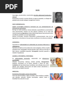 Cianosis, labios color rojo negruzco, conjuntiva, epicanto, adormecida. Pómulos aplanados. Nariz y labio