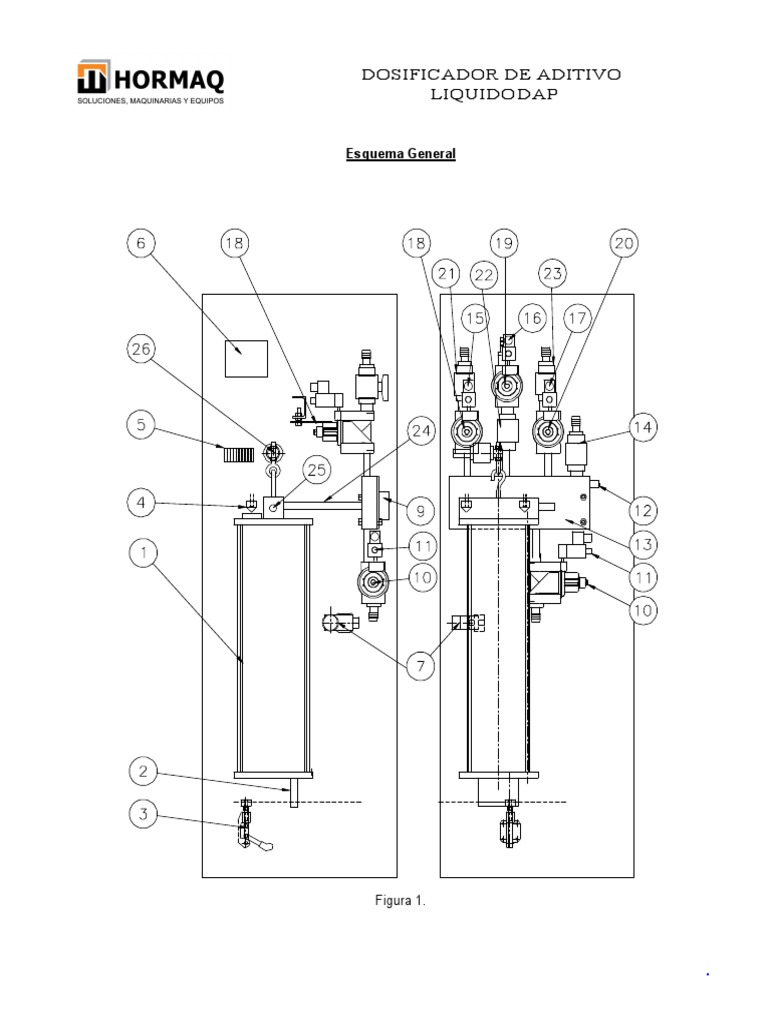 23) Llave de regulación de flujo de carga, aditivo 2 (opcional).